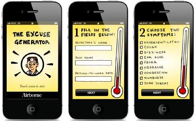 Since Airborne keeps you nice an healthy, it is a shame to waste those sick days. The Airborne app helps to create a message for your to leave with your work making you sound sick, so you can enjoy a "health" day.